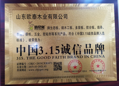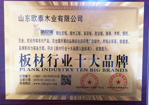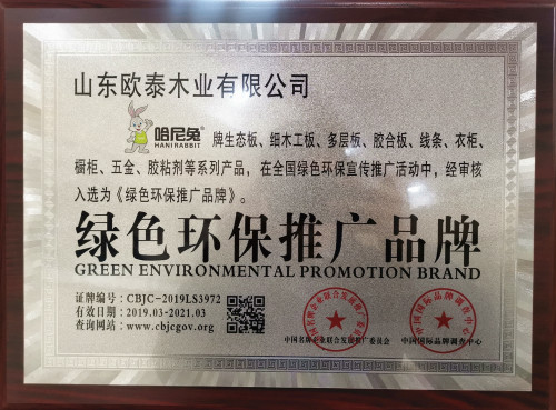山东欧泰木业旗下的"哈尼兔"品牌始终瞄准打造"生态家居板材品牌"的目标,以推进环保板材进程为责任,整合各种优势资源参与全球竞争;倡导"环保板材、低碳生活"的健康消费理念。